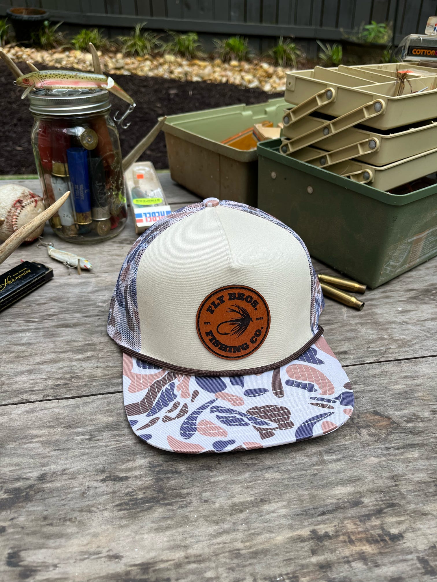 Camo/Cream with Brown Rope